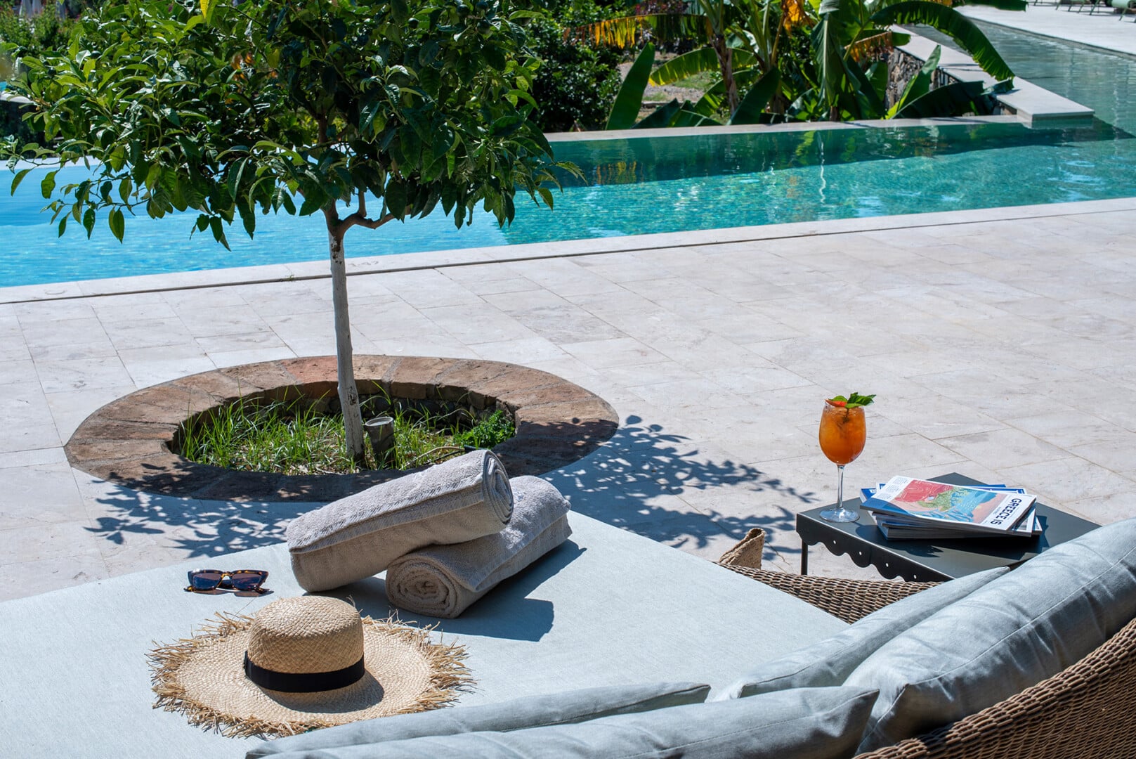 Die Pool Bar befindet sich neben dem Pool für Erwachsene. Hier trifft die Kühle des Wassers auf der Haut auf die Kühle von Cocktails und den leichten Genuss von kleinen Mahlzeiten über den Tag verteilt. Wir lassen uns von den frischen Früchten unseres Gartens inspirieren und bieten unsere eigene Version zeitloser Lieblingscocktails an, die mit